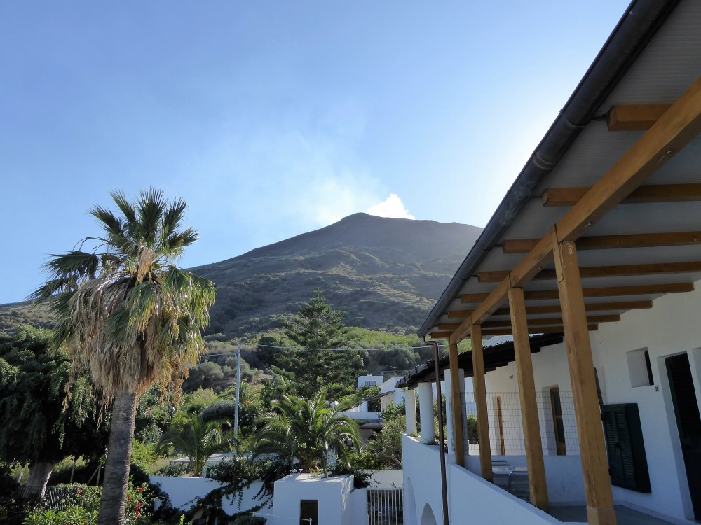 Seit unserem ersten Törn in diesem Revier locken uns die Liparischen Inseln nördlich von Sizilien, und besonders die Vulkaninsel Stromboli möchten wir gern besuchen. Dieses Mal schaffen wir es. Nicht auf eigenem Kiel, denn wieder ist die Wetterlage nicht stabil, und vor der Insel liegt man zu unruhig. Aber von Tropea aus fahren regelmäßig Ausflugsdampfer, wenn es die Seebedingungen zulassen. Erst wenige Stunden vor Abfahrt erfahren wir, dass die Fähre für die Rückfahrt am kommenden Tag auch sicher gehen wird, und so kann Jörn das Hotel auf der Insel Stromboli buchen. Die 1,5 Std-Fahrt hinüber ist gegen die Wellen eine heftige Tour, aber Paula hat sich unter der Bank eingekringelt und lässt sich nicht beeindrucken.